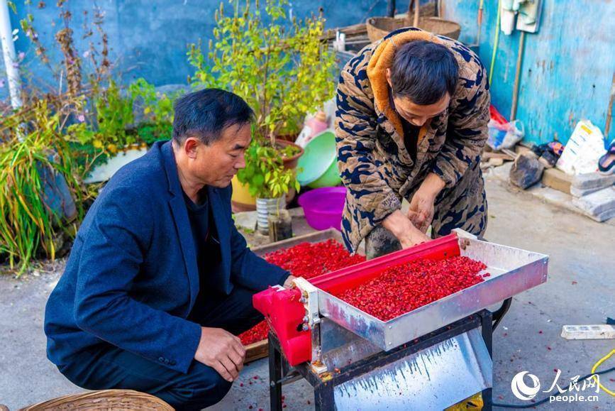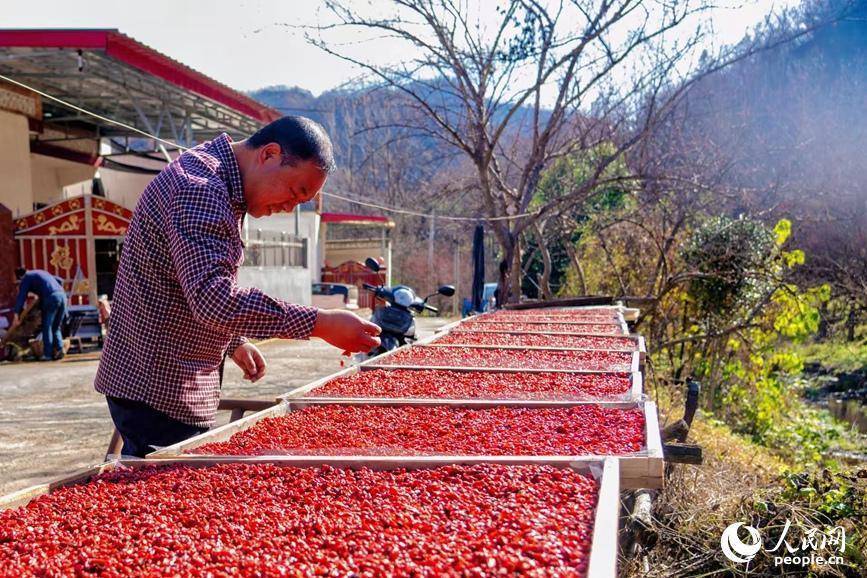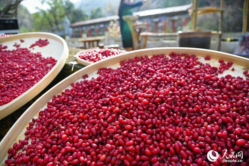 村民们手持采摘工具穿梭林间,熟练地将一颗颗红果采回家中。经清洗、去核、晾晒、烘干等规范流程,山茱萸完成初加工提质,再经传统炮制后便可入药。西峡是山茱萸的“道地产区”,作为当地特色支柱中药材产业,山茱萸已成为村民的“致富果”。