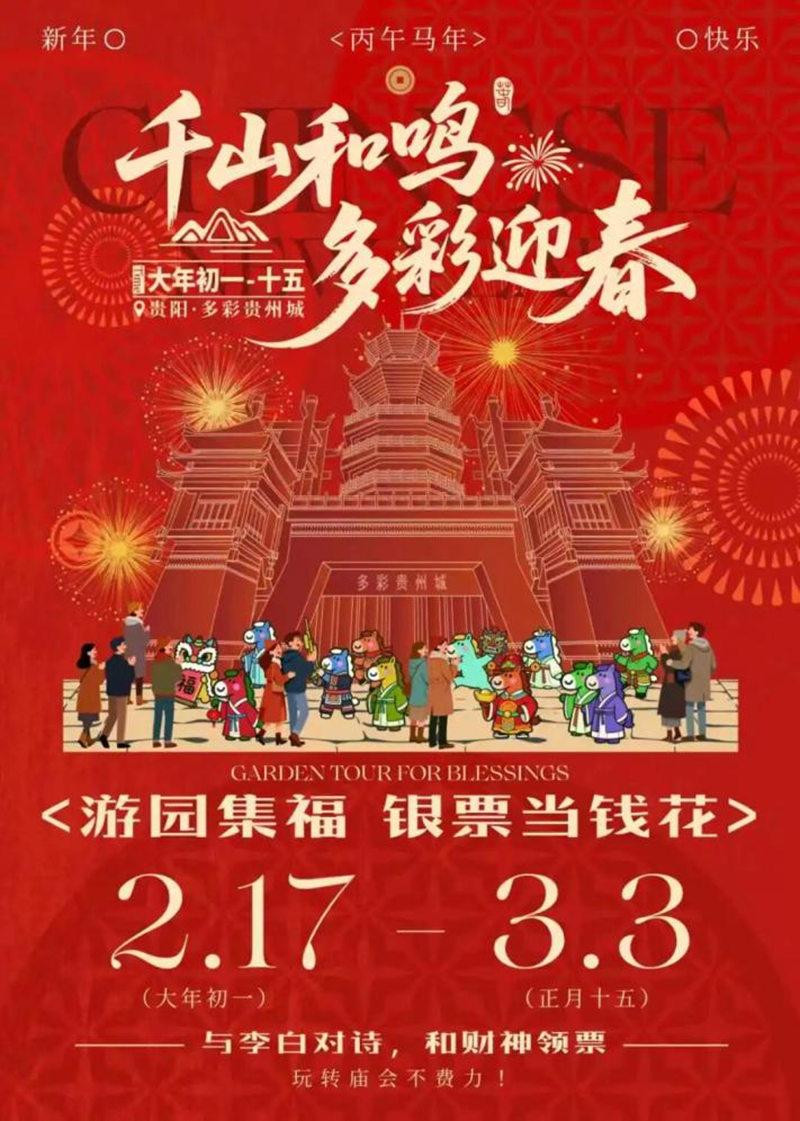 2月17日至3月3日,多彩贵州城“千山和鸣·多彩迎春”新春游园大庙会邀您赴约,逛庙会、赏百戏、品年味,让游客沉浸式体验浓郁的年节氛围。